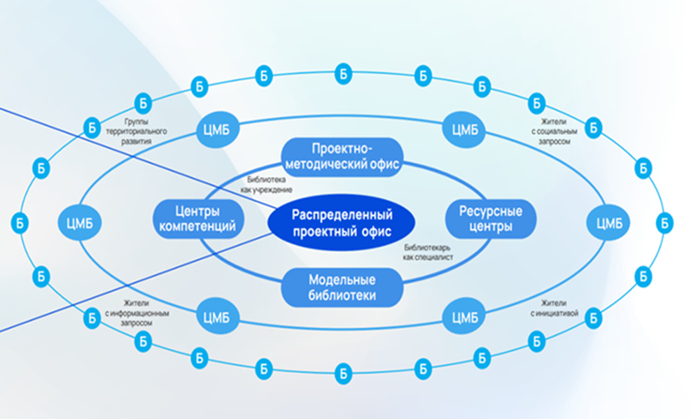• ведущие узлы, которыми автоматически становятся центральные муниципальные библиотеки как методические центры для библиотек-филиалов;